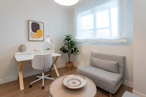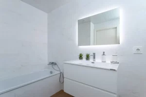 Nowo wybudowane mieszkania są umeblowane w wysokiej jakości materiały Grupy PORCELANOSA (podłogi, glazura i meble w łazienkach), system ogrzewania podłogowego oraz system chłodzenia kanałowego w salonie i sypialniach.