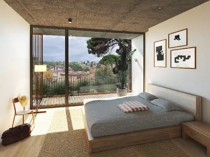 The house is built of high quality materials, walls and ceilings exposed concrete, large windows, floors made of natural wood and porcelain of the highest quality.