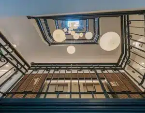 Zabytkowy budynek, wpisany na listę zabytków, odrestaurowany i odnowiony z wyśmienitym designem. Projekt renowacji obejmował renowację elewacji i konserwację najbardziej charakterystycznych elementów, takich jak balkony, główne schody, marmurowa podłoga, główne drzwi z kutego żelaza i drewniane drzwi domów.