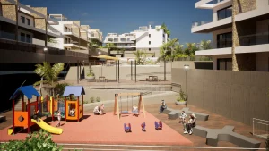 The complex offers large terraces with panoramic views of the sea and mountains, making it an ideal place to relax and enjoy the sun all year round.