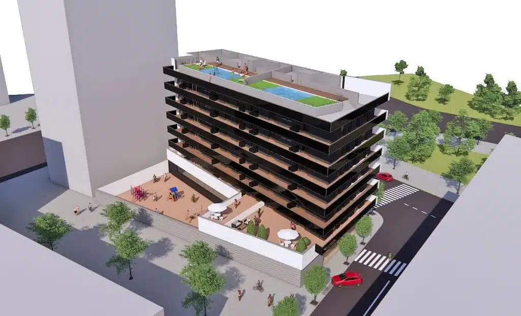 Nowy kompleks mieszkaniowy zawiera 24 apartamenty z 2, 3 i 4 sypialniami, z możliwością miejsc parkingowych i komórek lokatorskich. Wszystkie apartamenty mają duże tarasy i uprzywilejowaną część wspólną z krytym basenem.