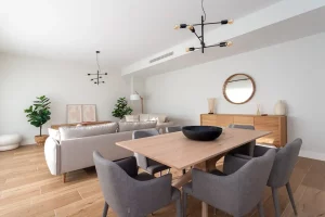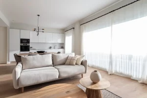 Nowo wybudowane mieszkania są umeblowane w wysokiej jakości materiały Grupy PORCELANOSA (podłogi, glazura i meble w łazienkach), system ogrzewania podłogowego oraz system chłodzenia kanałowego w salonie i sypialniach.