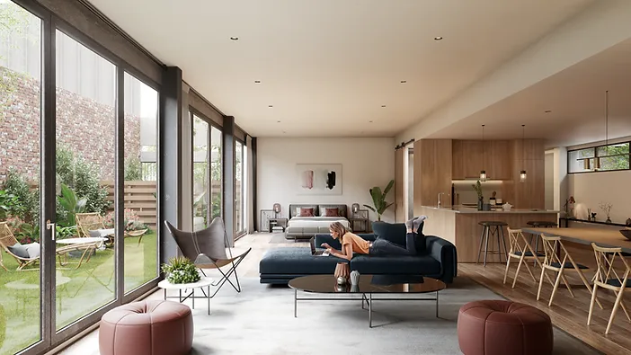Struktura mieszkania z naturalnych materiałów, stworzona tak, aby cieszyć się światłem i przestrzenią z całkowitą swobodą.Miejsce do delektowania się życiem.